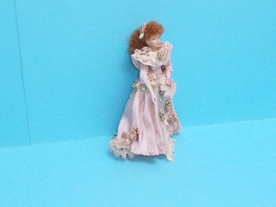 Dolls house doll [porcelain] in pretty pink, 150 m/m High (Poseable)