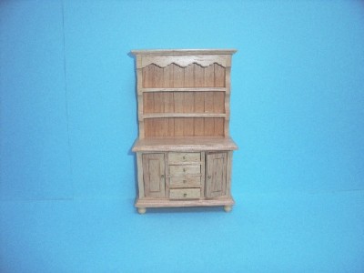 KITCHEN DRESSER FINISHED IN NATURAL WOOD WITH FOUR DRAWERS, TWO CUPBOARDS & TWO SHELVES.