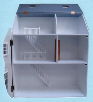 PAINTED DOLLS HOUSE SHOP (INTERIOR AND EXTERIOR) This attractive looking shop with two large windows for display and a huge sales area that incorporates the whole of the ground floor. The stairs, located on the rear wall, lead to two floors above of living accommodation or storage which allows plenty of scope for imagination with front access to top floor via lift up roof front. *Opening windows on 1st floor. *Suitable for any type of business. *MDF construction. *Supplied built & painted, white interior with fitted internal paneled door. *Exterior finished in cream & white.