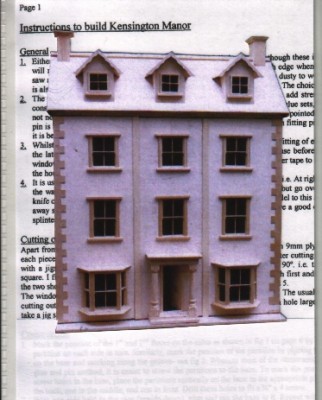 KENSINGTON MANOR DOLLS HOUSE PLANS. – Build this elegant looking four storey Manor Dolls House using our very easy to follow (A4) plan sheets. House has a pillared main entrance, central stairs leading to six large rooms plus two more in attic acessed via the three dormered lift up roof. Quoin stones add the finishing touch to the front facade.